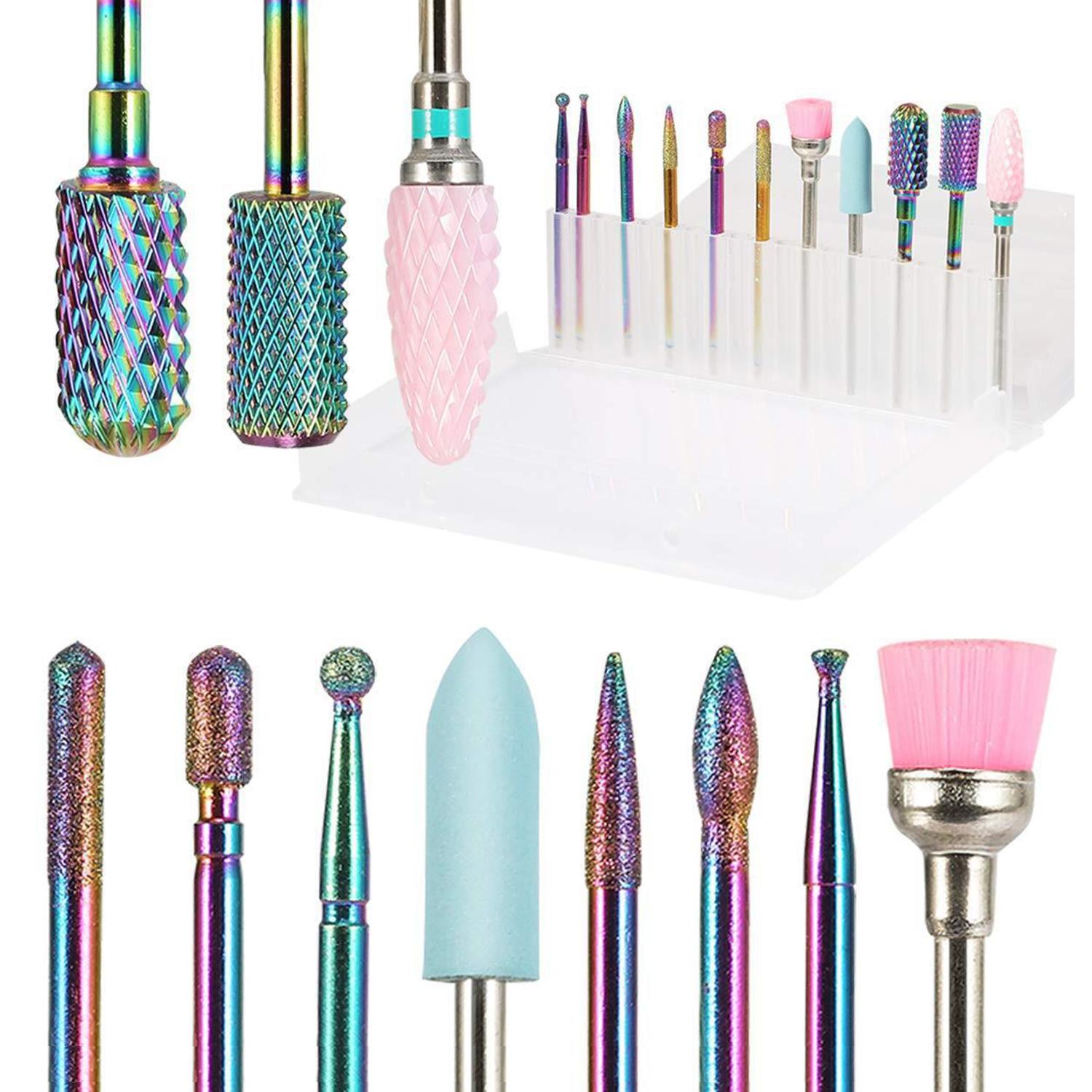 ネイルビット ネイルドリルビットセット 11本セット 虹色 レインボーカラー ネイルマシン対応 電動用 セラミック ビット ((S