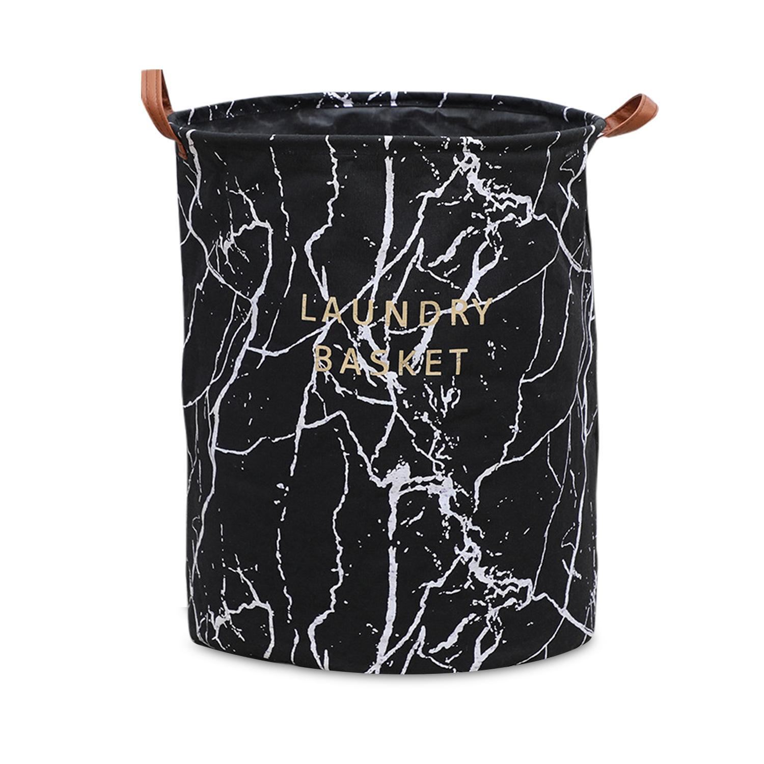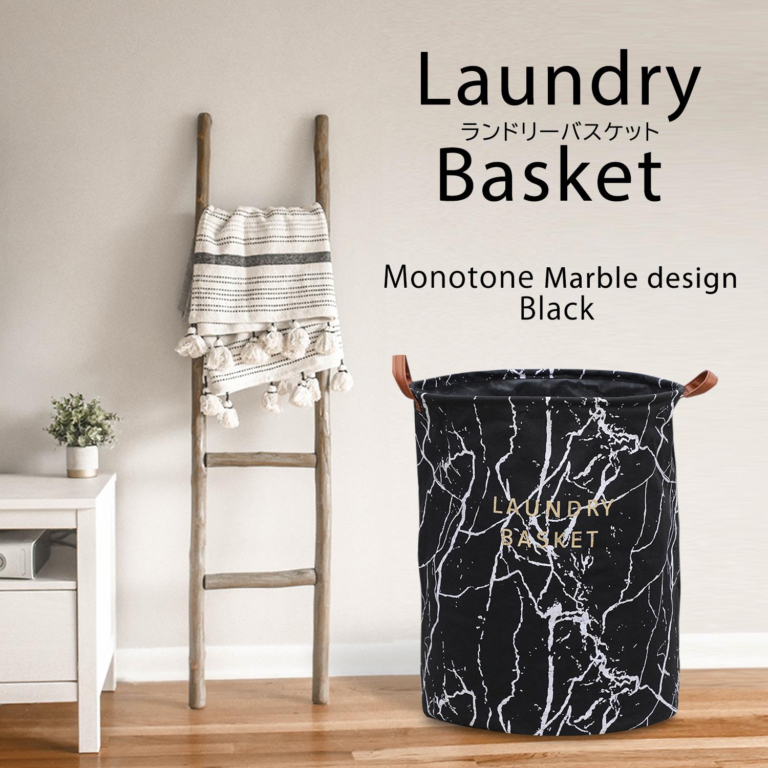 ランドリーバスケット 大容量 折りたたみ可能 ブラック×ホワイト 洗濯かご 脱衣かご 防水 おしゃれ 北欧 ((S