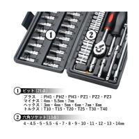 プラス・マイナス、トルクス等の工具もセットになった、機械修理やDIYなど様々な場面で活躍できます。