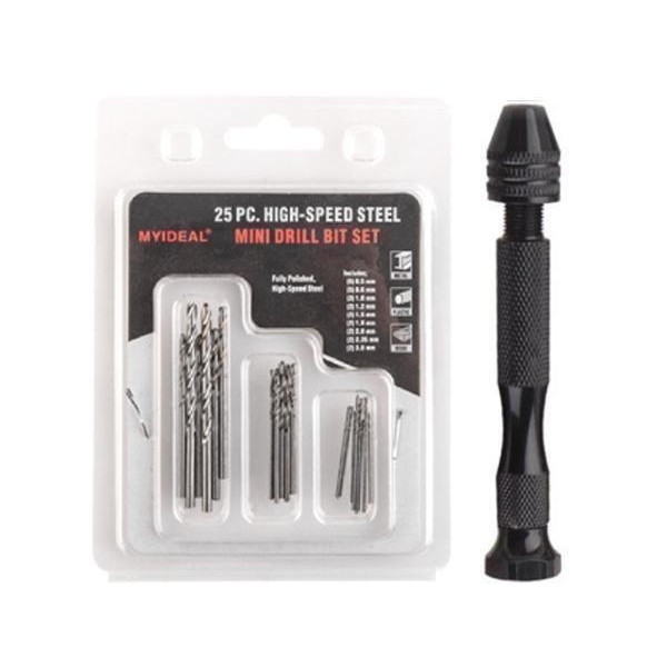 ピンバイス ハンドドリル ドリル25本付き 太いグリップ バイス プラモデル 工具 ブラック ((S
