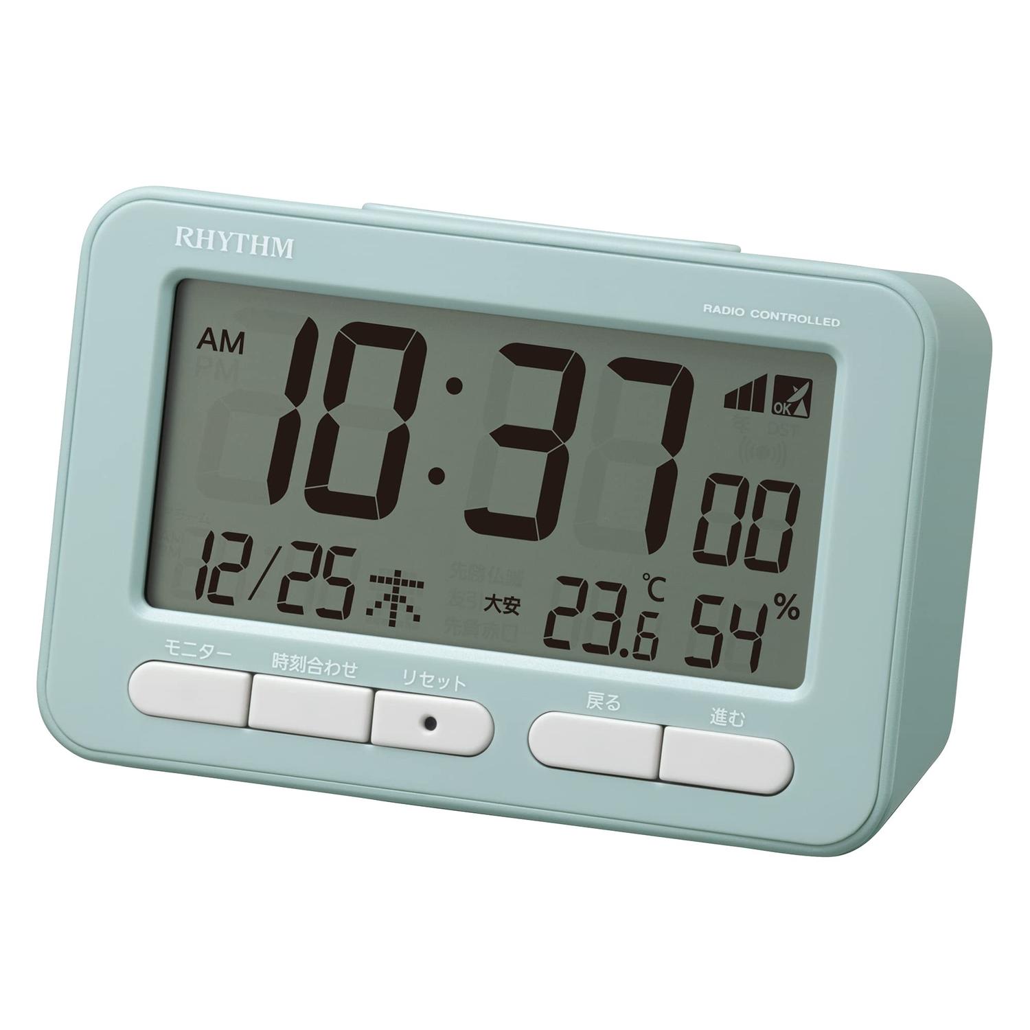 リズム 8RZ234SR04 ブルー 目覚まし時計 電波時計 アラーム 温度計 湿度計 カレンダー フィットウェーブ D234 RHYTHM