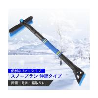 スノーブラシ 伸縮タイプ 3in1 車用スノーブラシ 雪かきブラシ 伸縮式雪対策ブラシ ブルー