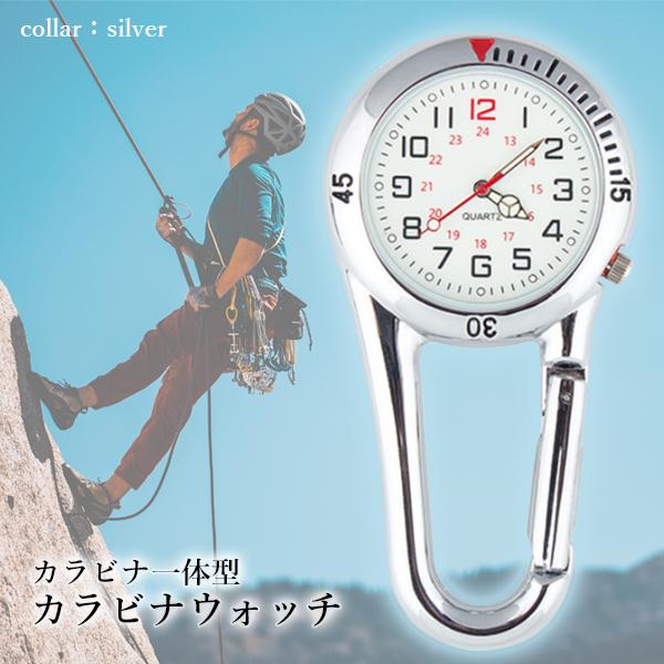 カラビナウォッチ 時計 登山用 アウトドア バックパック用 カラビナ カラビナ時計 キャンプ シルバー