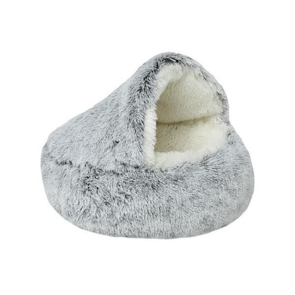 猫 ベッド ドーム型 グレー M 冬 猫ベッド ペットベッド クッション 寝台 猫ハウス 寝床 寝袋 ふわふわ 柔らかい ((S