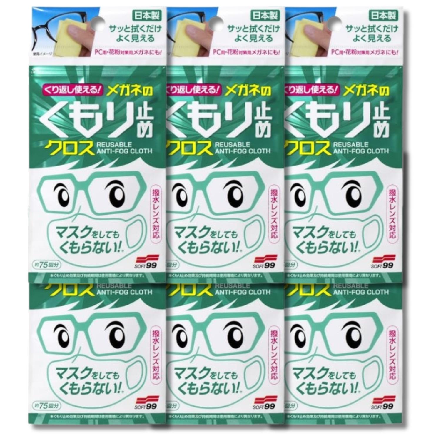 6個セット くり返し使えるメガネのくもり止めクロス 3枚