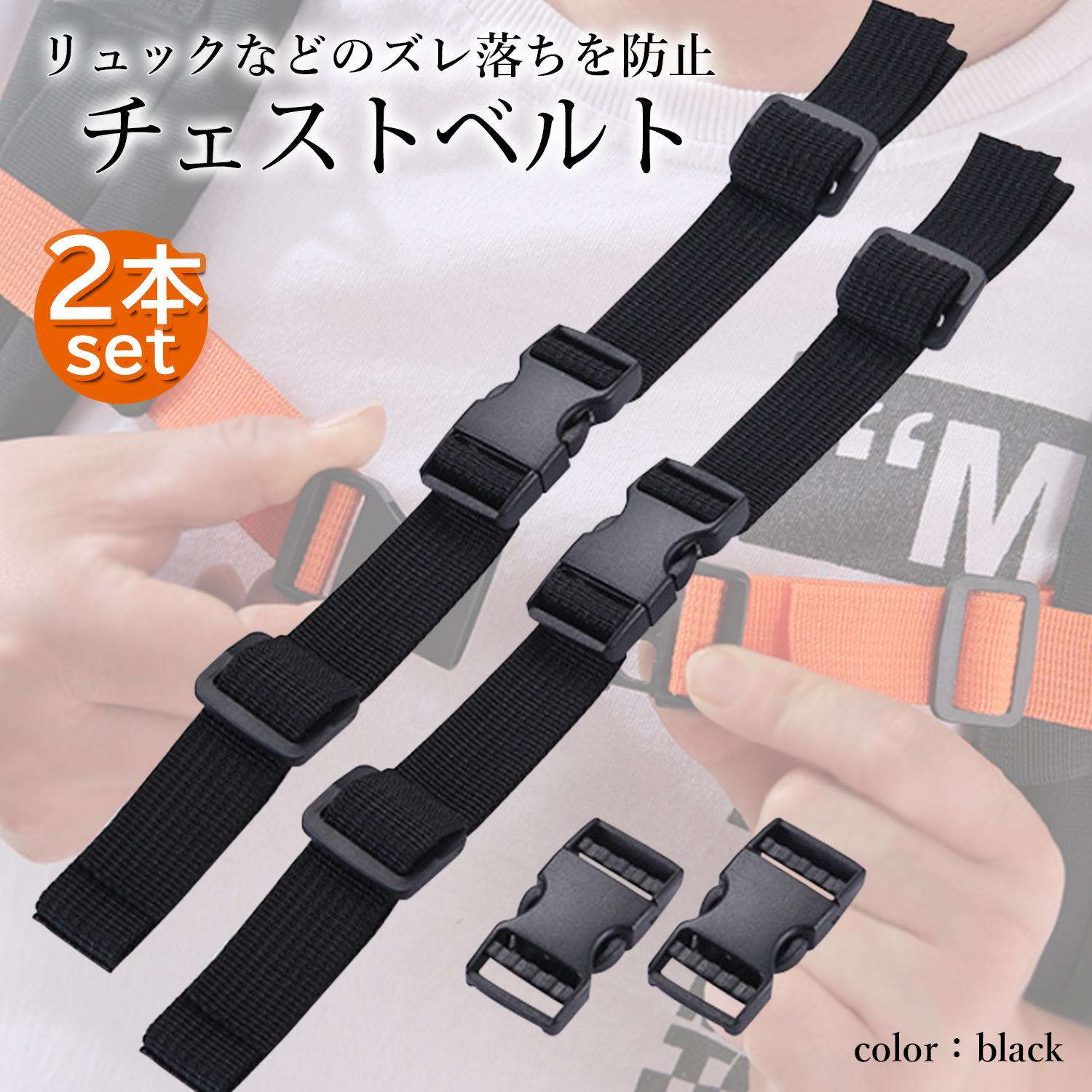 チェストベルト ブラック チェストストラップ リュックベルト 2個セット ランドセル ズレ落ち防止 ずり落ち防止 サイズフリー ((S