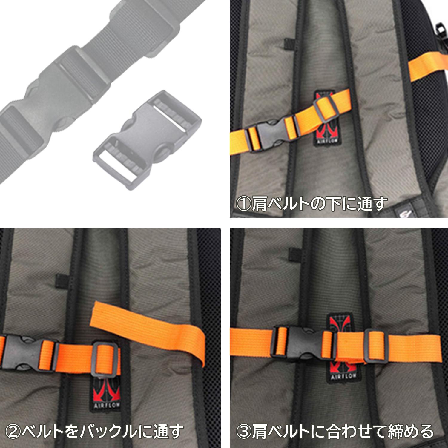 ・リュックサックなどのズレ落ちを防止するチェストベルトです。