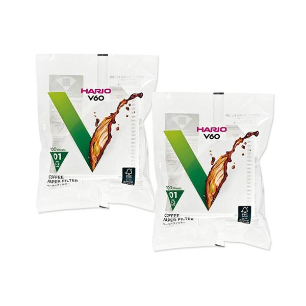 2個セット ハリオ VCF-01-100W V60 ペーパーフィルター 1~2杯用 100枚入り ホワイト 01W HARIO