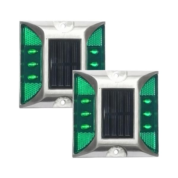 2個セット ソーラーライト 点滅式 道路鋲 ライト グリーン LED 充電 道路 照明 ガーデン 防水 埋め込み ((S ((S