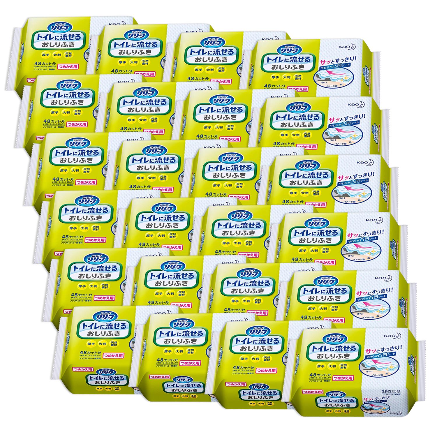 24個セット 花王 リリーフ トイレに流せるおしりふき つめかえ用 24枚 (48カット) Kao