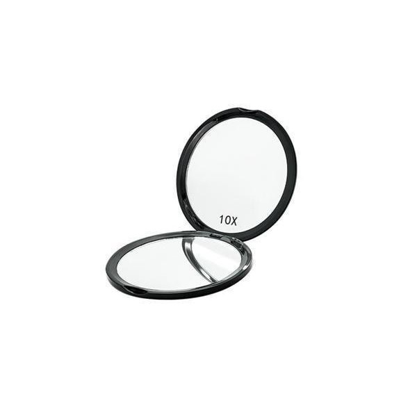 2個セット 拡大鏡 10倍 コンパクトミラー ブラック 両面 2WAY 手鏡 折りたたみ 卓上 化粧 鏡 丸型