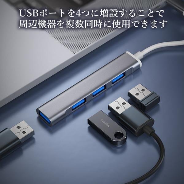 3個セット USBハブ USB3.0 Type-C バスパワー 4ポート 4in1 拡張 軽量 コンパクト スリム グレー ((S