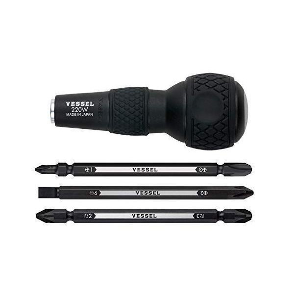 ベッセル 220W-3 ボールグリップ 差替ドライバーセット(プラス、マイナス、ポジドライブ ビット付) VESSEL