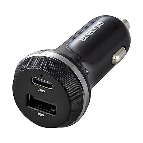 エレコム MPA-CCPD08BK カーチャージャー ブラック USB Power Delivery準拠 20W+12W USB-C1ポート USB-A1ポート