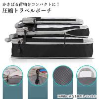 圧縮袋 旅行 旅行用 おむつ トラベルポーチ 圧縮ポーチ 圧縮バッグ ブラック 3点セット ファスナー 衣類圧縮袋 便利グッズ ((S