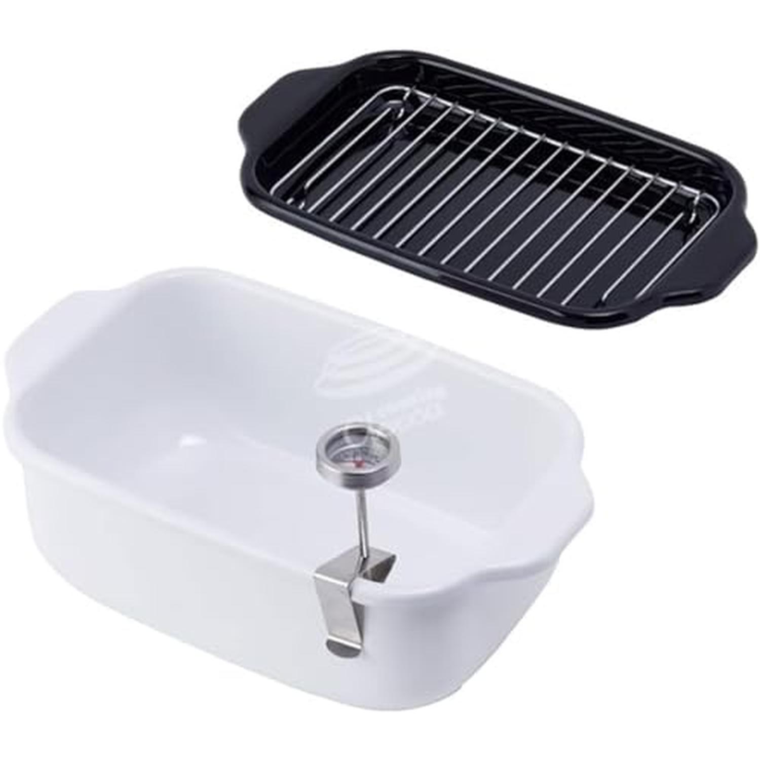 富士ホーロー TP-20K W ホワイト 角型天ぷら鍋 琺瑯製 丸洗いできる温度計 スノコ網 バット付き