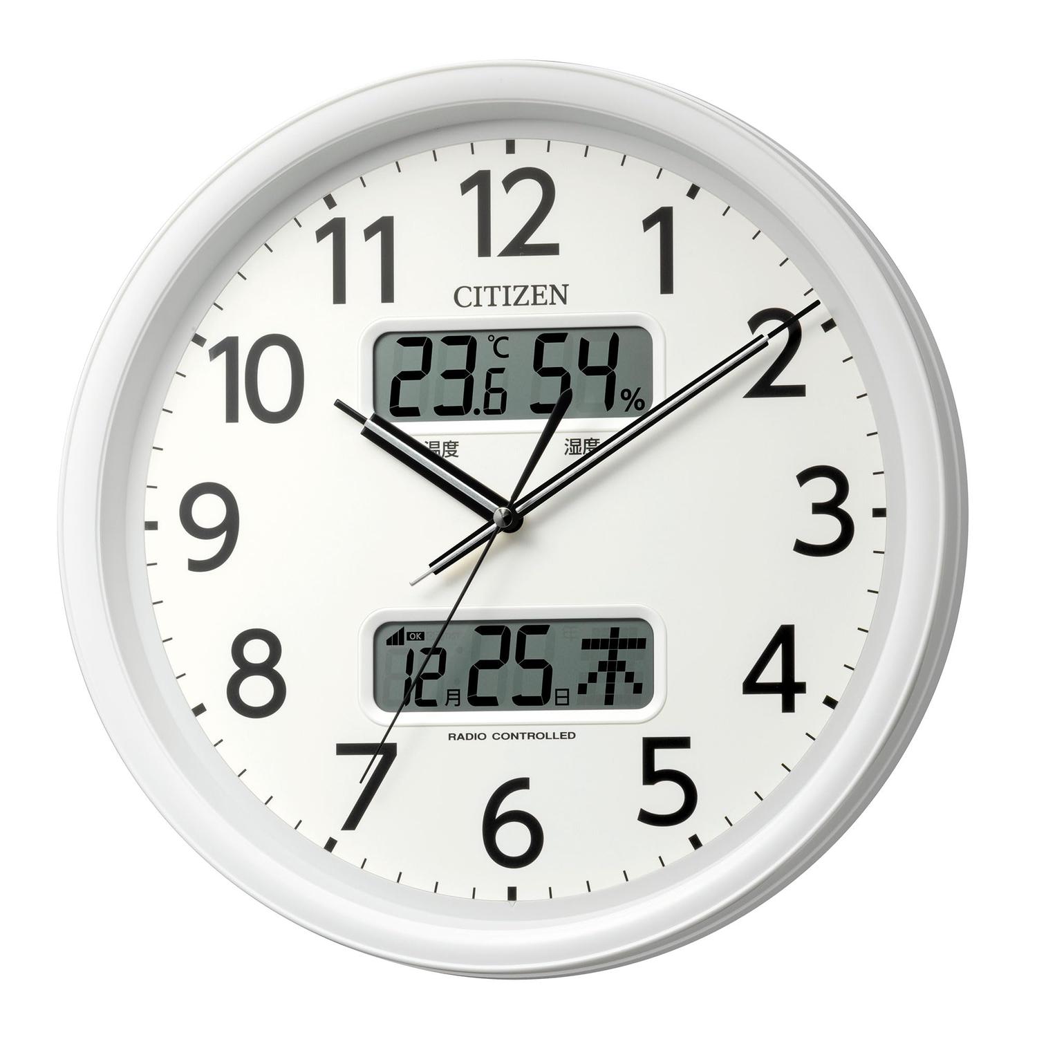 リズム 8FYA06-003 白 シチズン 掛け時計 電波時計 アナログ 温度 湿度 カレンダー デジタル CITIZEN RHYTHM