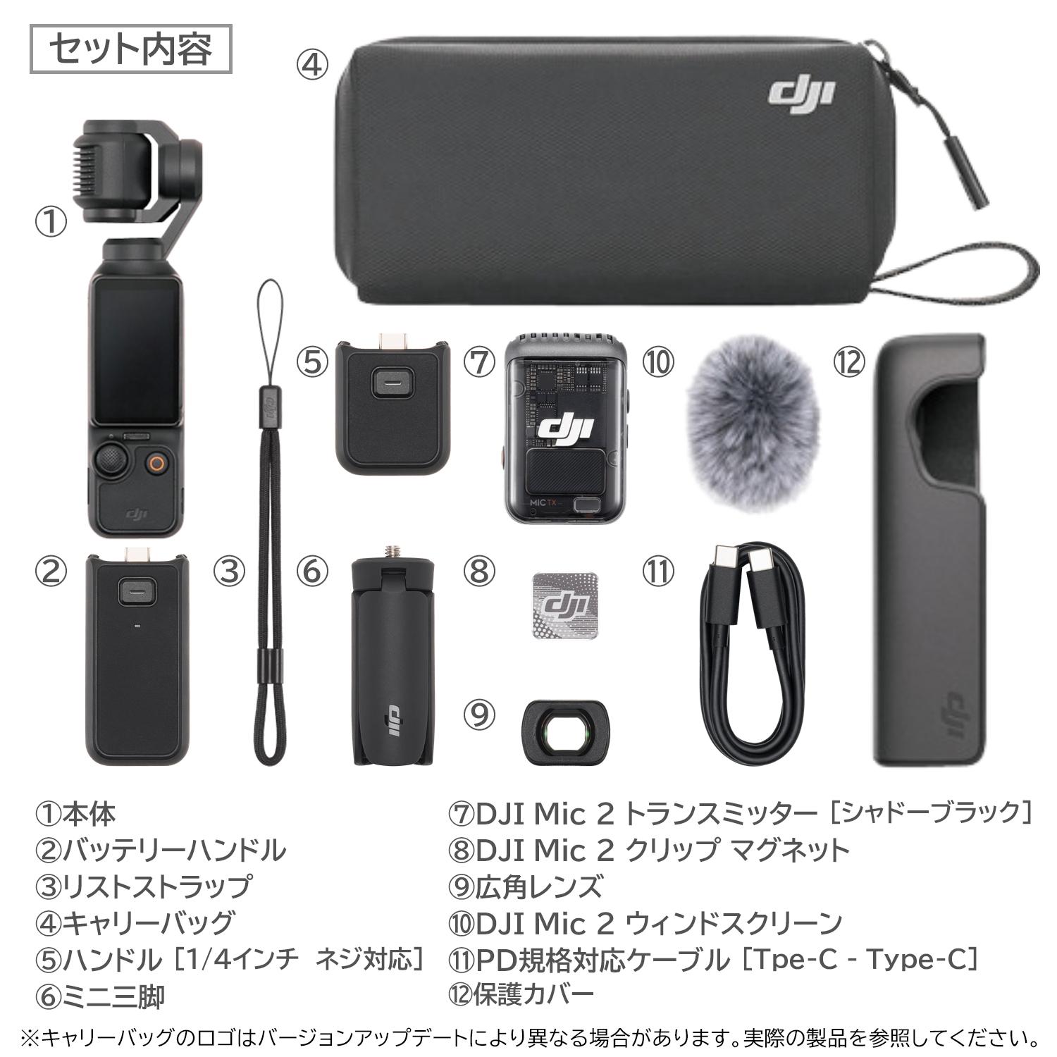 DJI Osmo Pocket 3 クリエイターコンボは、1インチCMOSセンサーを搭載した小型ジンバルカメラ「Osmo Pocket 3」に、広角レンズやDJI Mic 2トランスミッター、バッテリーハンドル、ミニ三脚などをセットにした充実のパッケージです。