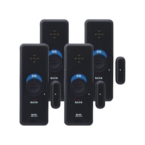 エルパ ASA-W13-N4P(DB) 窓ピタッアラーム 衝撃+開放検知式 (ダブル検知タイプ) 4P ダークブラウン ELPA