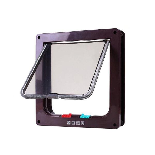 キャットドア ペットドア ブラウン S 壁 取り付け 猫 出入り口 薄型 4WAY 開閉ロック機能 ペット用品 小型犬 ((S
