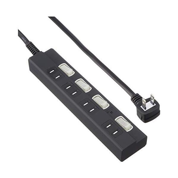 オーム電機 HS-TPK41PBT-K 雷に強い節電タップ 4個口 1m 黒