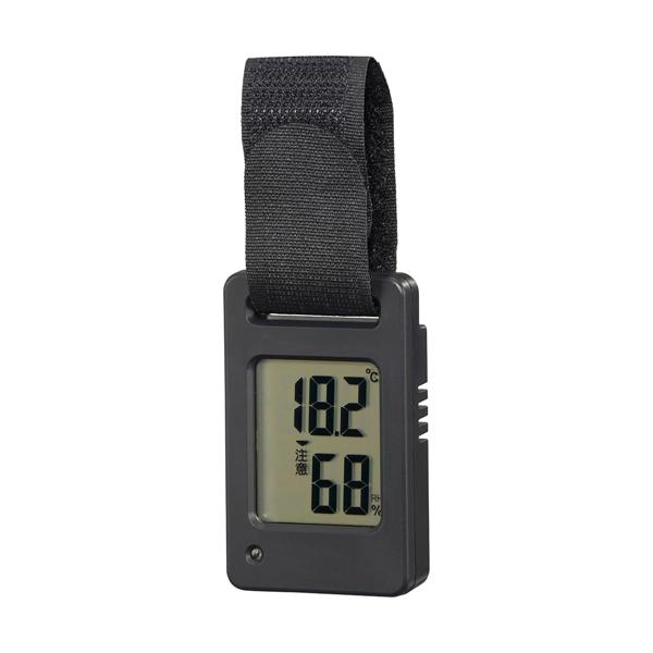 オーム電機 温湿度計 ミニ ポータブル デジタル バンド付き 注意マーク表示 ブラック TEM-801-K 08-1453 オーム電機