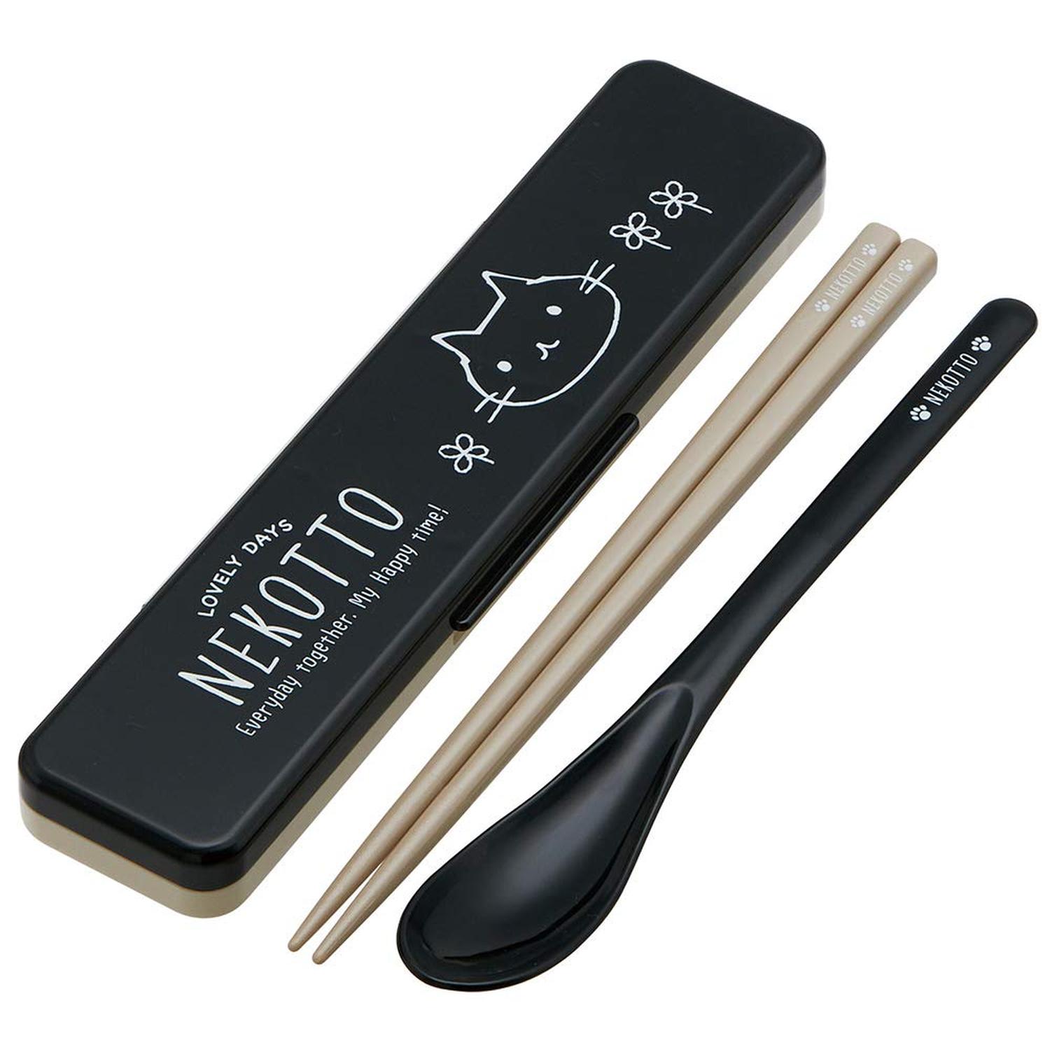 スケーター CCS3SAAG 箸 スプーン コンビセット 18cm 抗菌加工 お弁当 大人用 音がならない ねこっと Skater