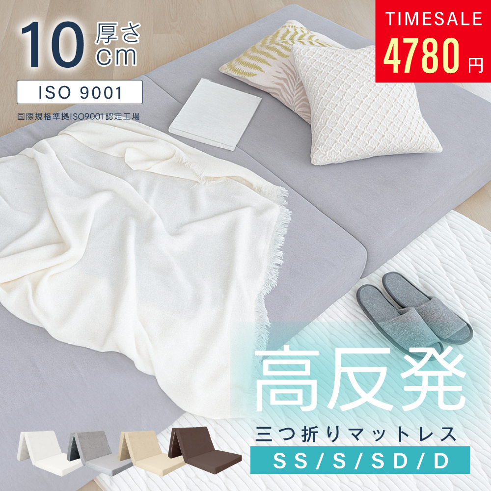 マットレス 高反発マットレス ベッドマットレス 三つ折り 折りたたみ 敷布団 10cm厚 期間限定4780円 シングル セミダブル ダブル 190N 洗える 高反発 en-mtrs01