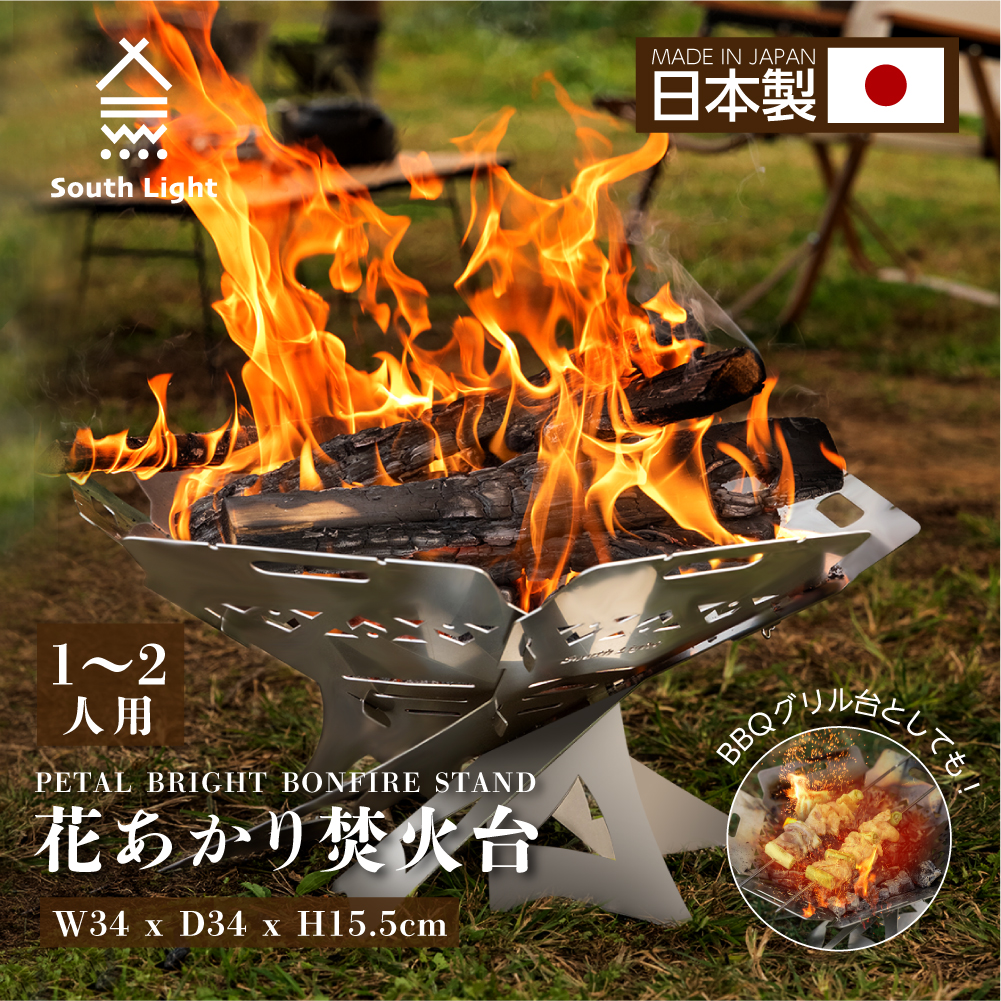 日本製 花あかり焚火台 バーベキューコンロ 料理用コンロ BBQ 薪 1-2人用 SouthLight 簡単組立 コンパクト 収納袋付属 アウトドア用品 sl-fhto-03