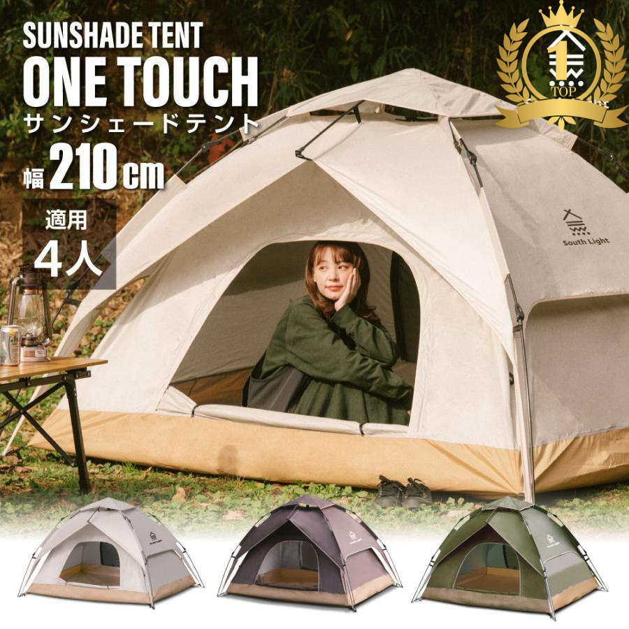 テント ポップアップテント ワンタッチテント 4人 収納袋付 大型 横幅210×高さ145cm サンシェード キャンプ UVカット アウトドア sl-zp210