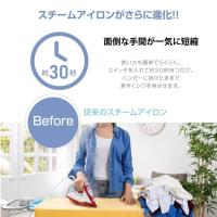 【アイロン・スチーマー両用】衣類スチーマーとして、ハンガーにかけたまま、サッとシワ伸ばします。水漏れ防止のデザインでアイロンのようにプレス仕上げも可能です。20秒スピード立ち上がり、朝忙しい出かけ前に最適です。