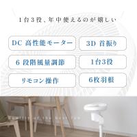 扇風機 DC 3D首振り 超静音 リビング扇風機 サーキュレーター 超静音 新色登場 卓上1台3役 高さ調節 6段階風量調節 USB給電式 リモコン