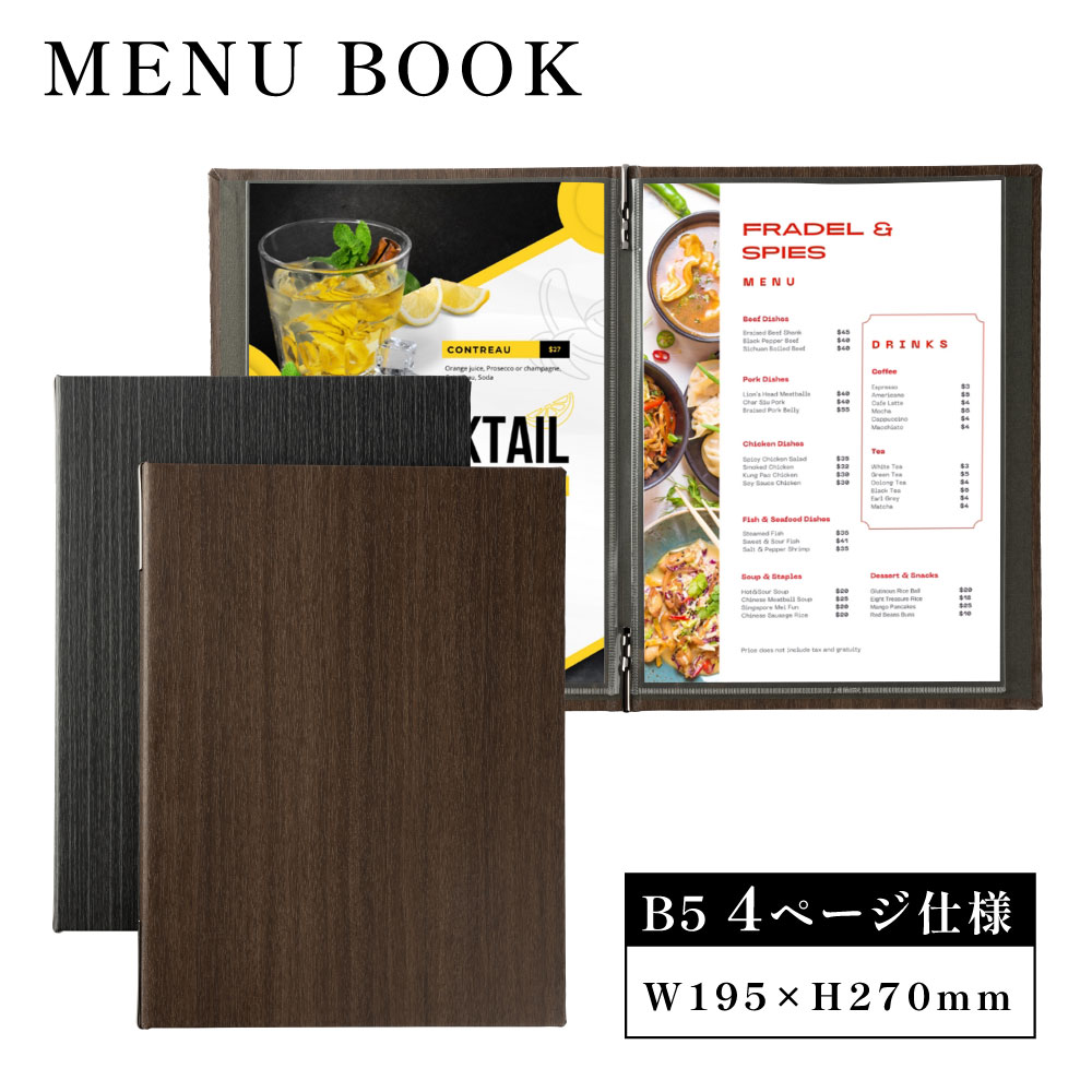 和洋メニューブック B5 洋風 和風 メニューカバー 品書き おしゃれ レストラン 飲食店 メニュー表 ファイルブック 業務用 高級 メニュークリップ式 yyb-cp03爆買
