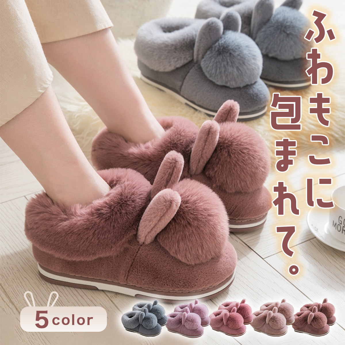 ◆足首までカバーできる可愛いふわもこのうさぎのようなルームブーツ♪