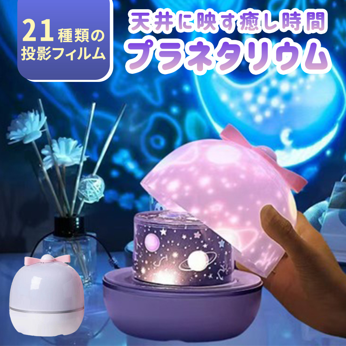 プラネタリウム ナイトランプ プロジェクター 21種類投影 小型 家庭用 子供 室内用 充電 天井 投影 おしゃれ 調光 星座 子供部屋 かわいい ベッドサイドランプ
