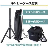 保管や運搬時に便利な専用ケースが付属。スピーカースタンドも付属、本体をポールに差し込むだけのクイック設置。