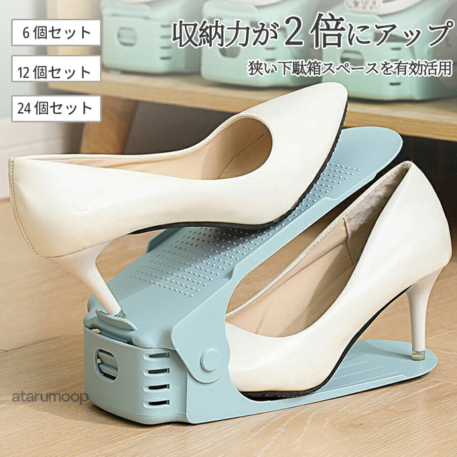【6個セット】省スペース 靴スタンド 男女兼用 靴 収納 収納量2倍 高さ調節可能 ハイヒール スリッパ スニーカー収納 シュースペースセーバー 7色 玄関収納