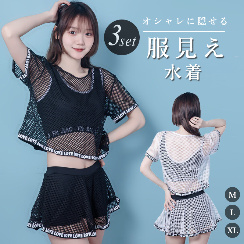 水着 レディース 体型カバー 高校生 中学生 3点セット