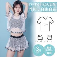 ○ 露出が苦手なあなたでも大丈夫なトップス付水着3点セットです。