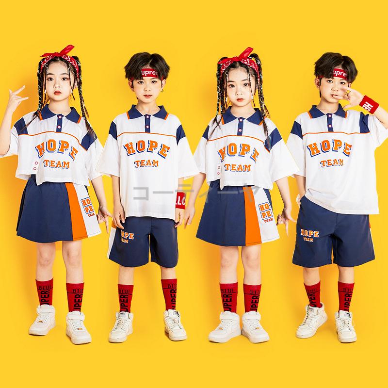 チアリーダー 夏 キッズダンス衣装 ヒップホップ HIPHOP トップス パンツ 子供服 韓国 ステージ衣装 キッズ ジャズダンス ダンスウェア 練習着 体操服