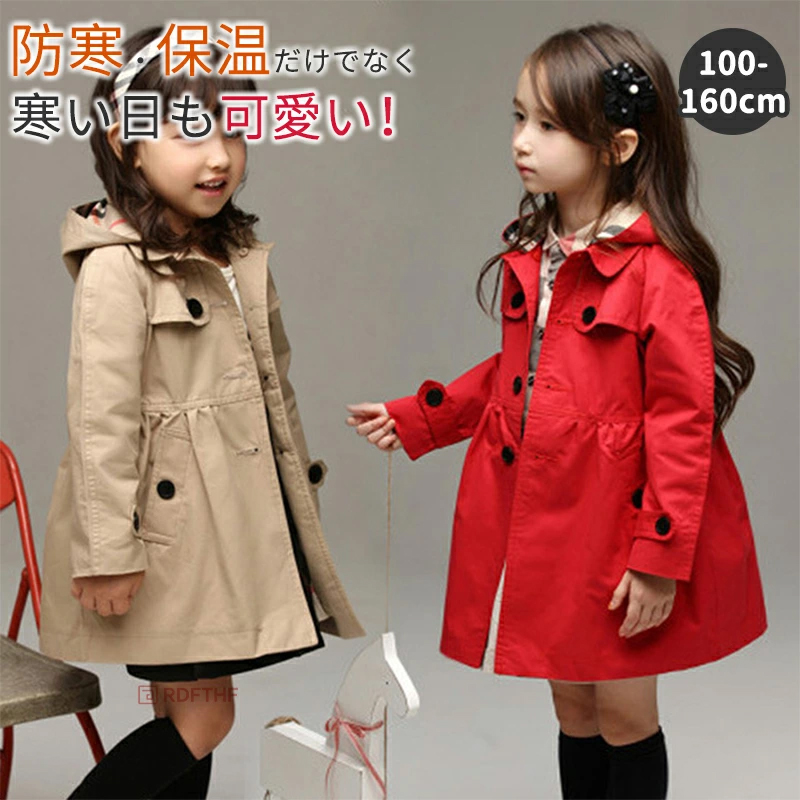 トレンチコート 女の子 子供服 オシャレ 子供コート レッド カーキ 無地 キッズコート キッズ ベビートレンチコート ロング丈 長袖 子ども服 カジュアル 春秋服