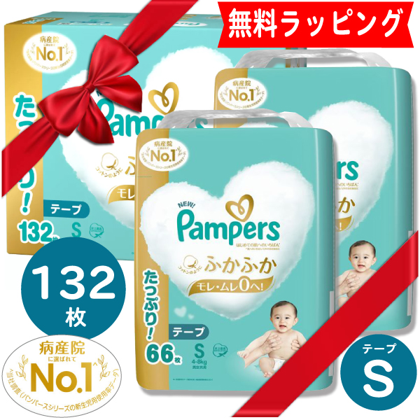 | ★パンパースのオムツ 高級「はじめての肌へのいちばん」66枚入り2袋132枚を包装紙で完全にお包みし、熨斗やリボンでラッピングしお届け致します。 | ||