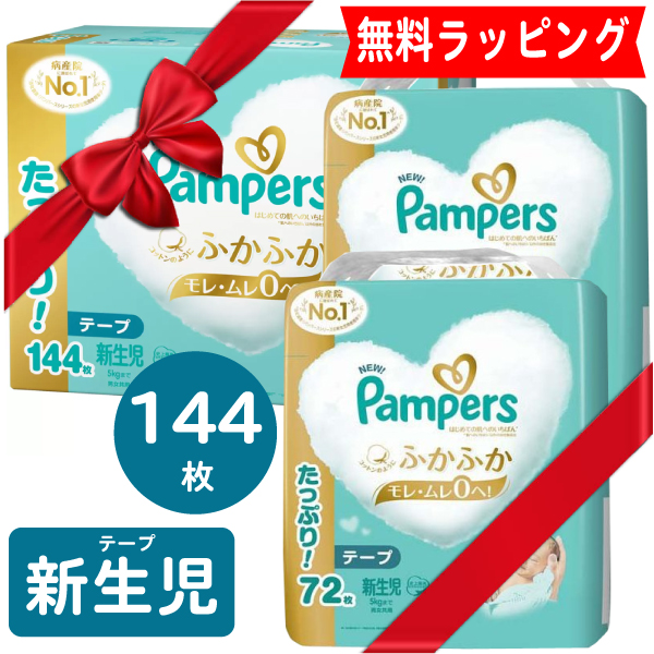| ★パンパースのオムツ 高級「はじめての肌へのいちばん」新生児用72枚入り2袋144枚を包装紙で完全にお包みし、熨斗やリボンでラッピングしお届け致します。 | ||