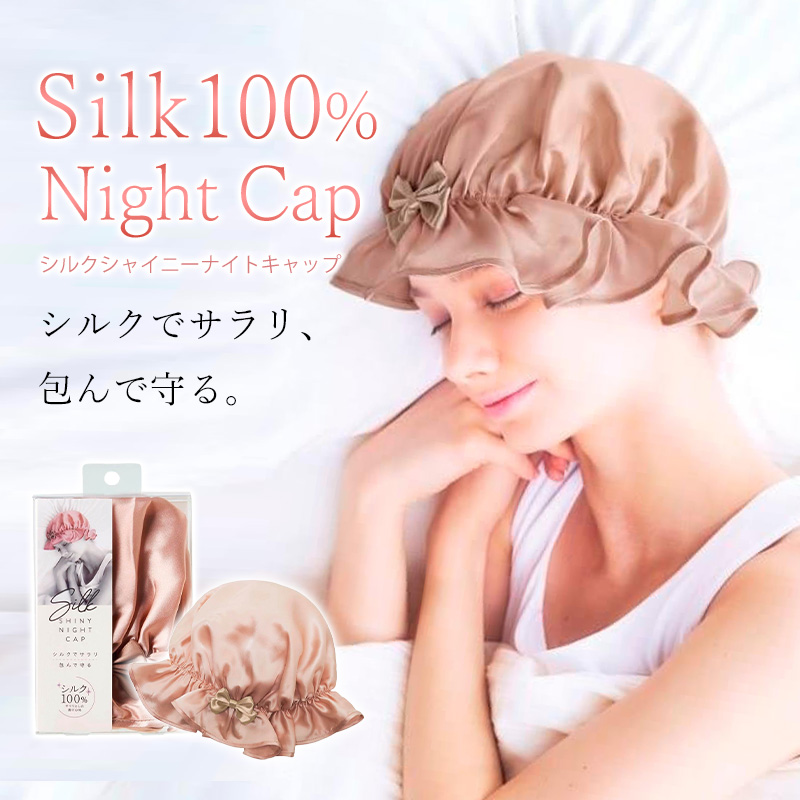 ナイトキャップ シルク 100% ロングヘア ダメージケア ゴム 女性 プレゼント シルクシャイニーナイトキャップ リボン 就寝 保湿 睡眠 ヘアケア