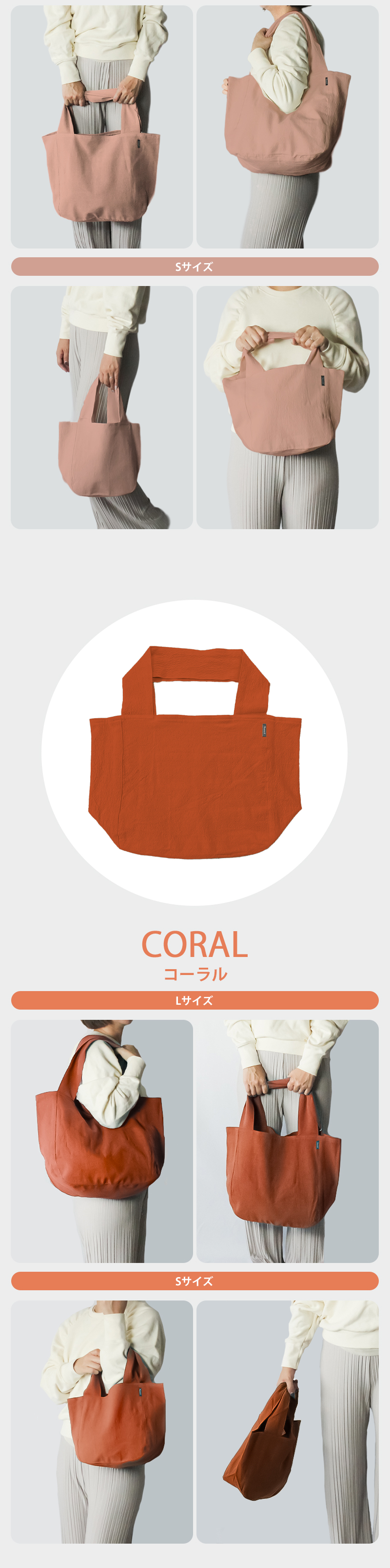 角のない丸みのあるシルエットは、コーディネートを選ばず、