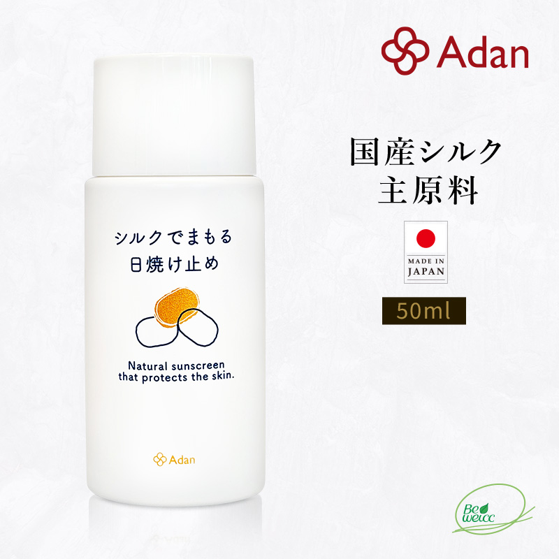 Adan(アーダン) シルクで守る 日焼け止め 50ml 日本製 UVケア UVカット 紫外線対策 無着色 無香料 紫外線吸収剤フリー アルコールフリー