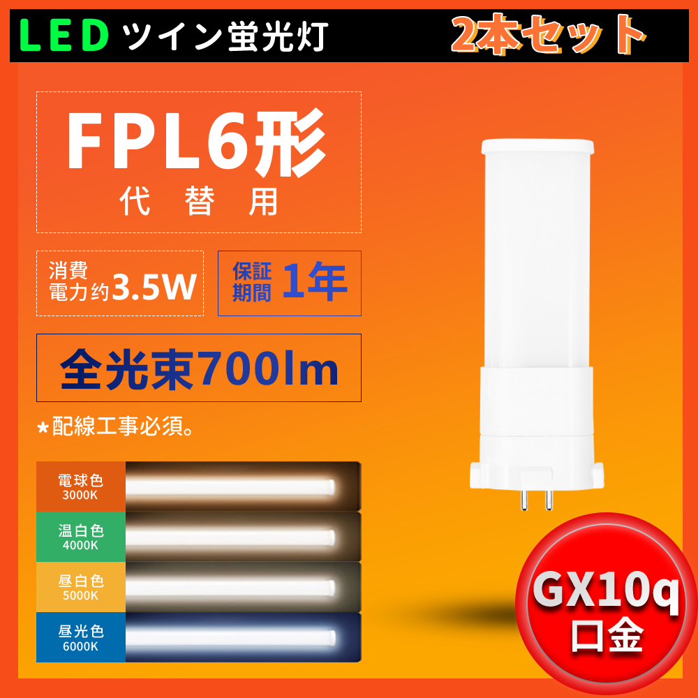 2本セット 新品L EDランプ ツイン蛍光灯LED(2本ブリッジ) FPL6EX/FPL6EX-L/W/N/D GX10q FPL6W形 FPL6型 消費電力3.5W 700lm ツイン1蛍光灯 高輝度
