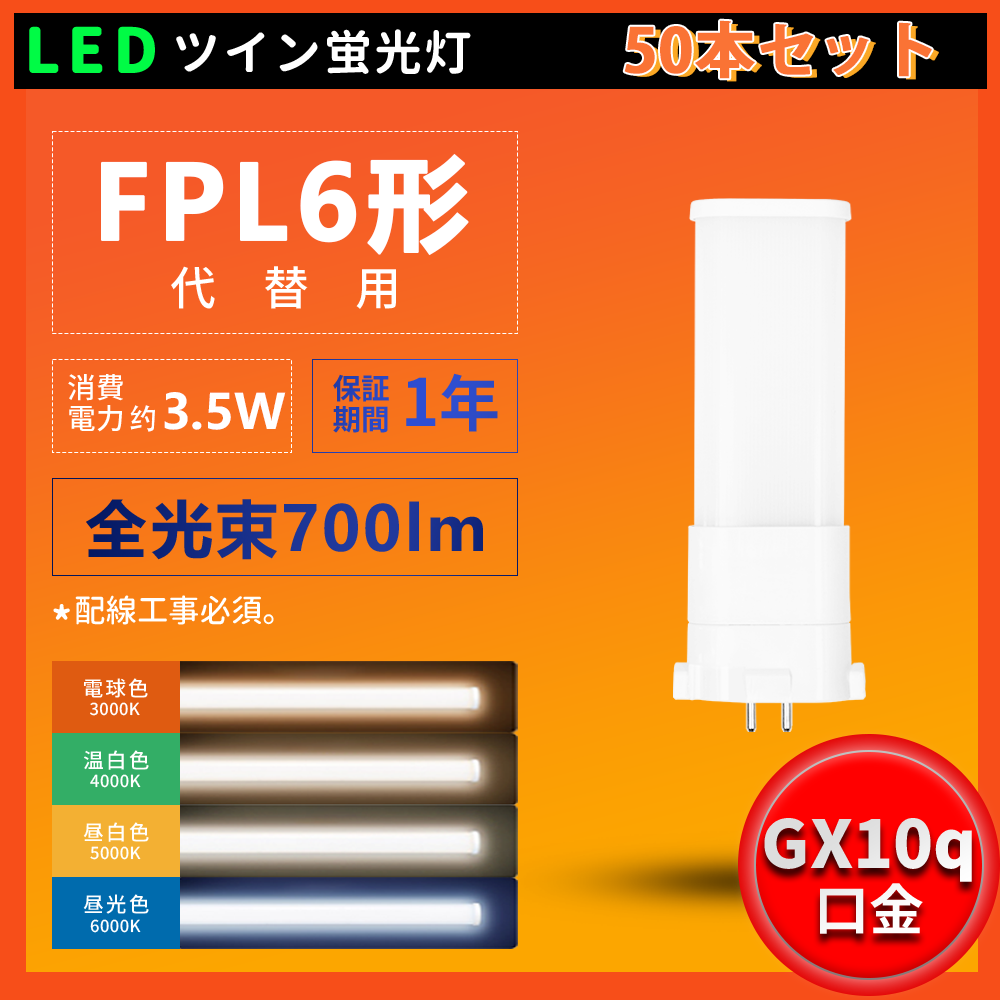 50本セット FPL6EX代替用 LED化 LEDライト FPL6Wled LED FPL6EXL FPL6EXW FPL6EXN FPL6EXD 3波長形 LED電球 天井照明 LED蛍光灯 (2本ブリッジ)