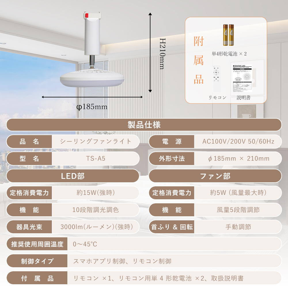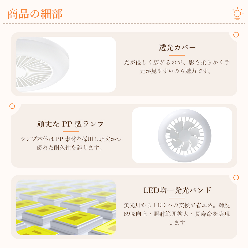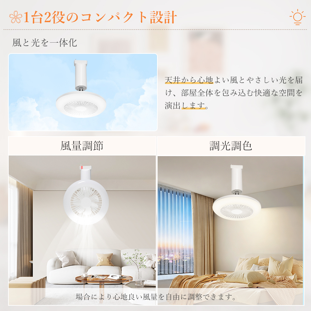 ライト・ファンそれぞれ独立運転可能、和室、寝室、居間、書斎、オフィスや、仕事場など様々な場所に適切です。