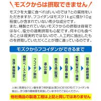 (1)フコイダン(ナノカプセル型):約733mg、(2)フコイダン(通常型):150mg、(3)緑茶抽出物:150mg、(4)長命草:300mgを配合。